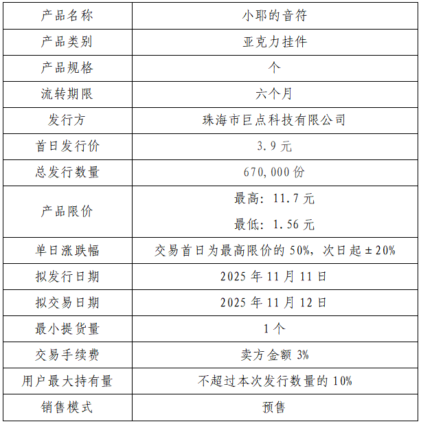 本次发行产品《小耶的音符》是一款亚克力挂件,集精致IP形象、优质材质与实用功能于一身。它小巧便携,色彩持久靓丽,既能作为日常搭配的趣味点缀,也是提升品牌好感度的精美周边。