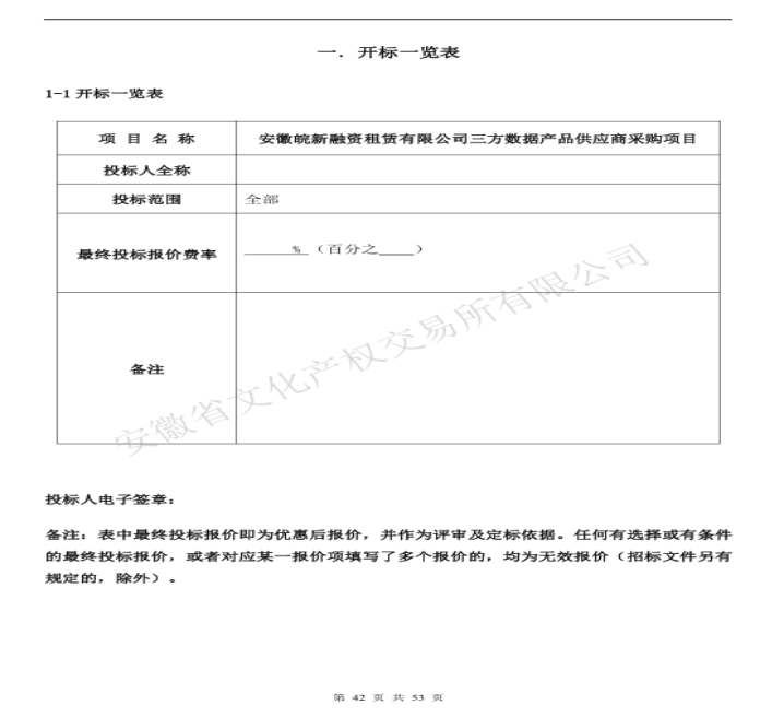 安徽皖新融资租赁有限公司三方数据产品供应商采购项目答疑公告