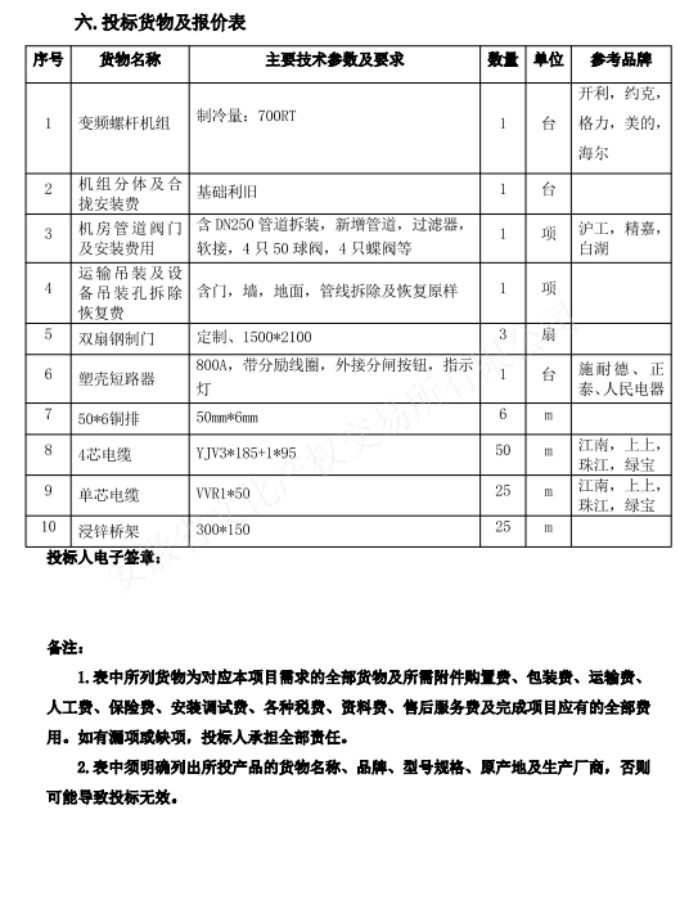 天鹅湖大酒店中央空调主机更换采购项目答疑公告(二)