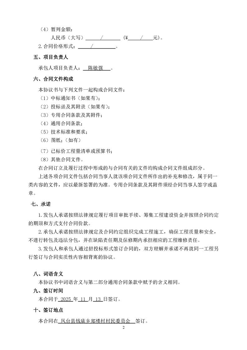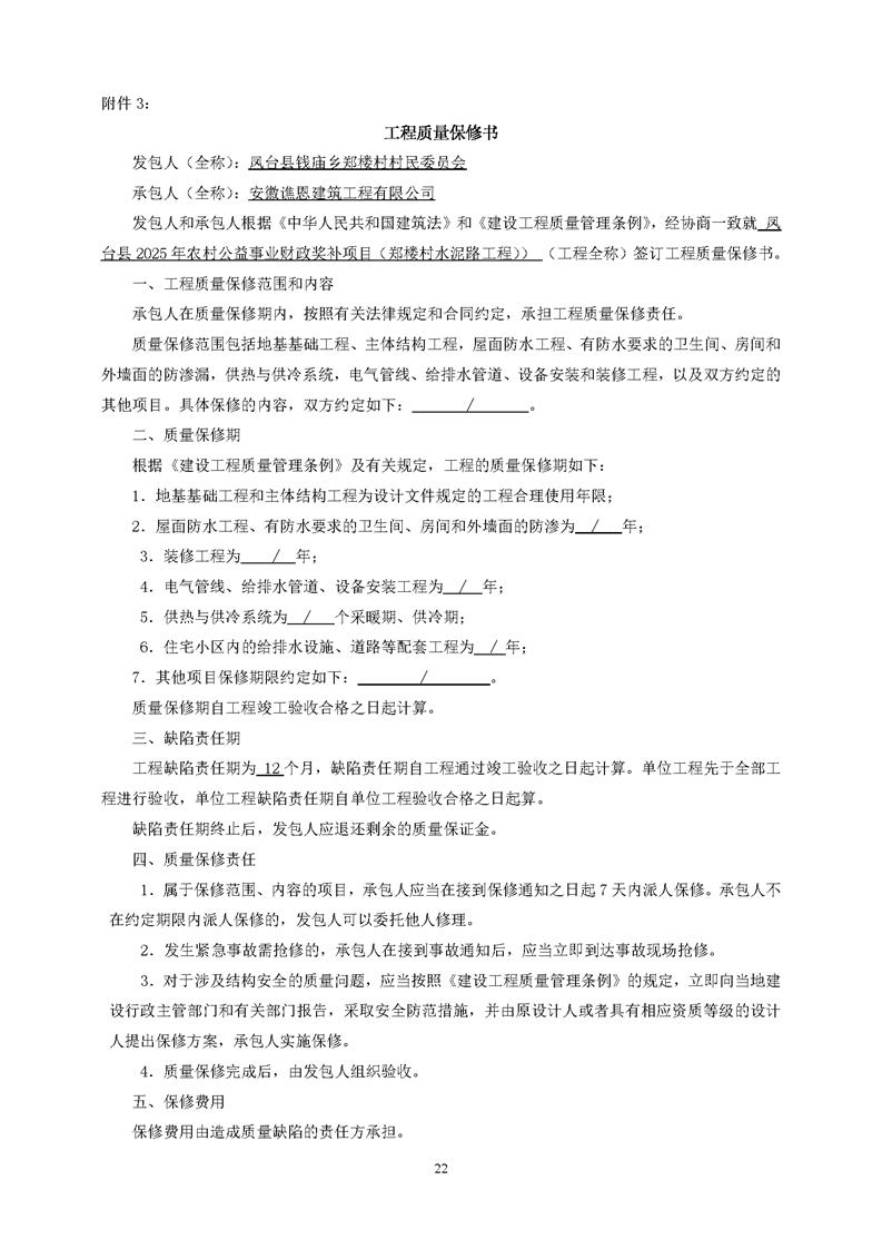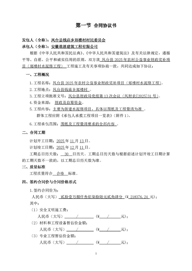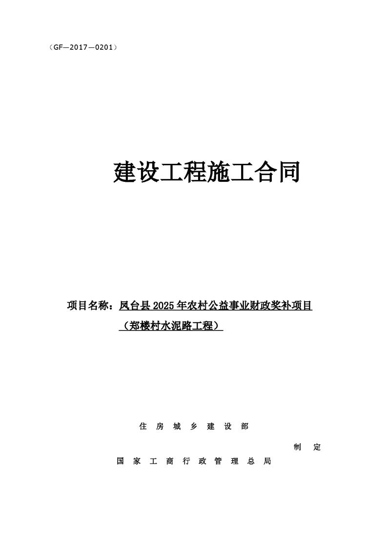 凤台县2025年农村公益事业财政奖补项目(郑楼村水泥路工程)合同公示