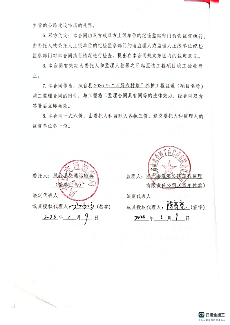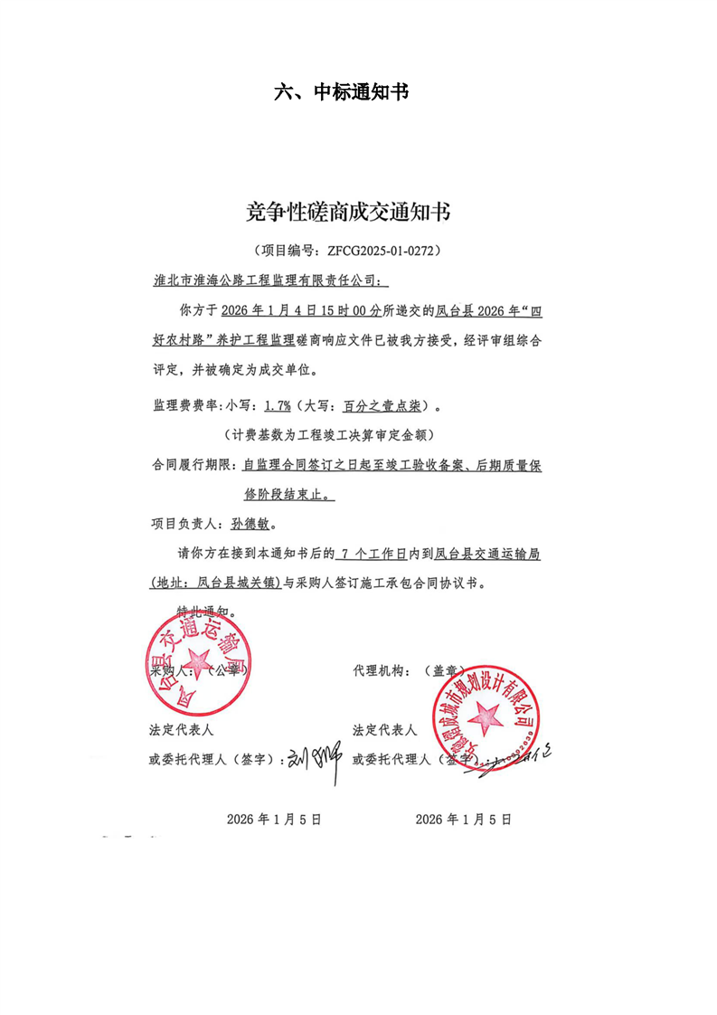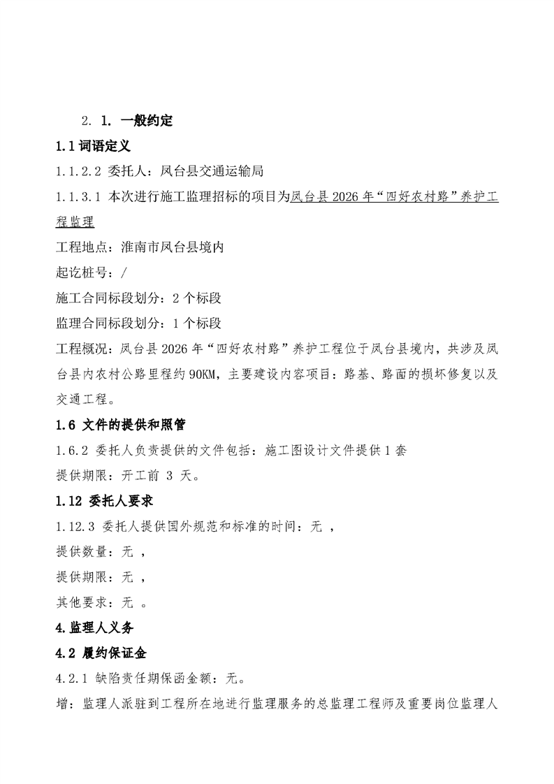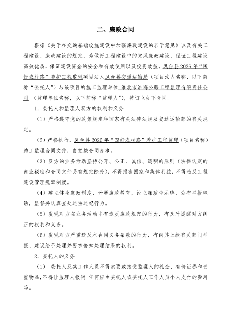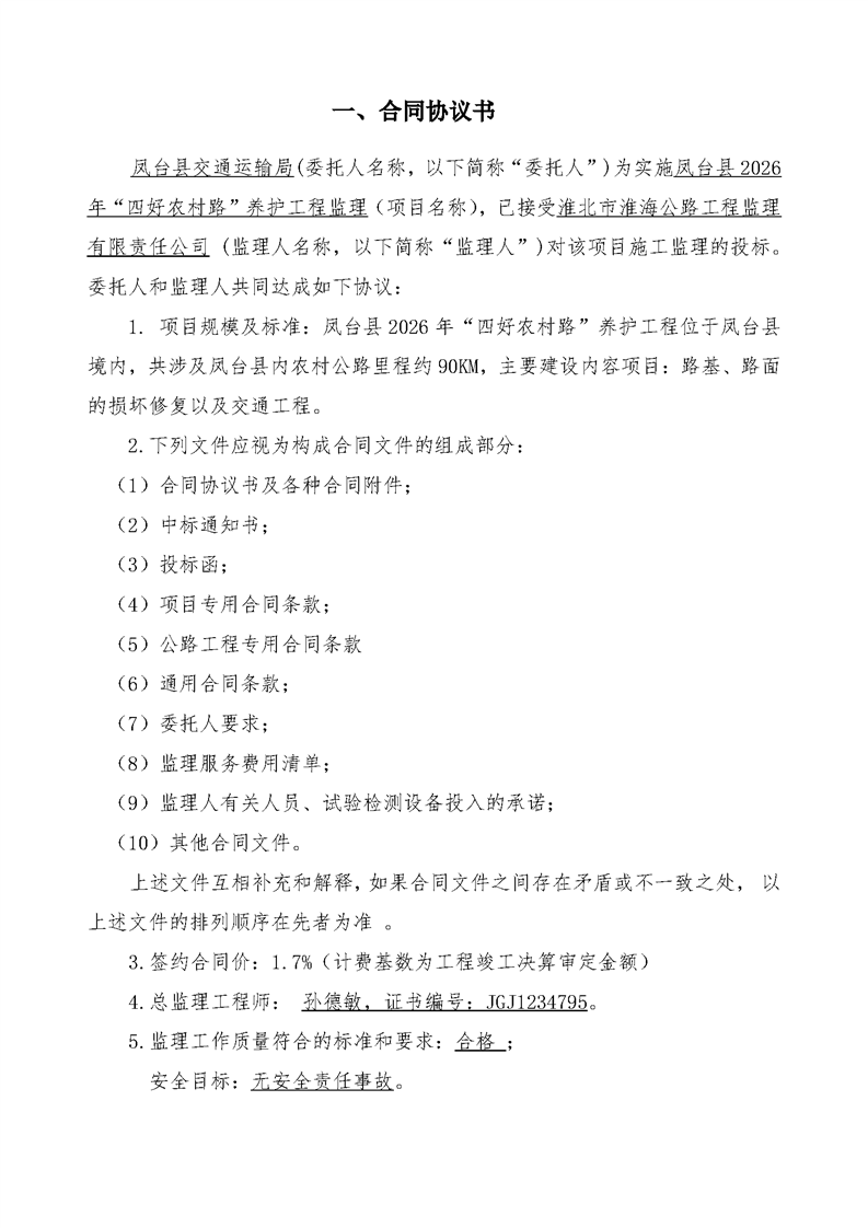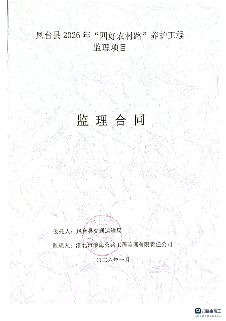 凤台县2026年“四好农村路”养护工程监理合同公示